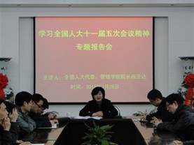 3月26日下午,管理学院举行学习十一届全国人大五次会议精神报告会,邀请全国人大代表、管理学院院长杨亚达作报告。学院领导班子、全体老师聆听了报告。报告由管理学院党委副书记、副院长季爱华主持。