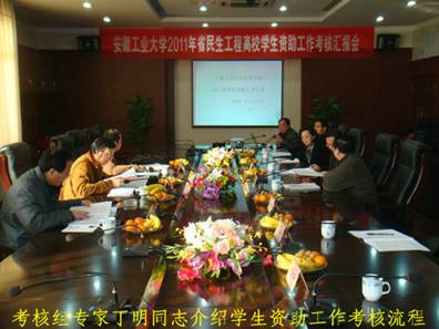 12月16日上午,由合肥学院副院长丁明、学生处处长董承军,淮南师范学院学生处处长朱志组成的高校学生资助工作考核组一行检查安工大工商学院2011年学生资助工作开展情况,并举行了工作考核汇报会。