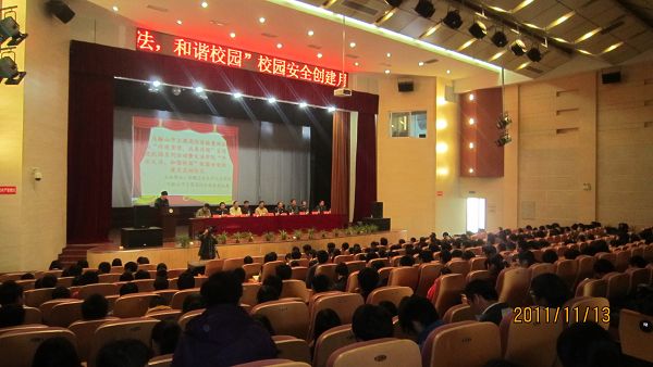 11月13日上午,文法学院在东区新大学生活动中心举行“平安文法,和谐校园”校园安全创建月的启动仪式。校保卫处处长任宏权,校学工部副部长季爱华,校就业指导中心副主任丁忠利,后勤集团副总经理刘绍兵,文法学院学生工作主管陈庆林老师及学院全体学生工作老师出席了启动仪式。