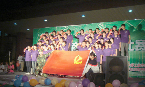 4月28日晚,嘹亮、雄厚的歌声在第一教学楼前响起,工商学院举办的“党在我心中”合唱比赛拉开帷幕。院党委副书记、副院长徐金元,党委副书记阚永明,学工处处长祝红以及团委负责人和各系辅导员前来观看比赛。这次合唱比赛以2010级各专业为参赛单位,16个专业依次登台,唱响红歌,场下掌声加油声不断。