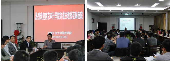 5月18日下午,南京审计学院许成安教授应邀为管理学院师生举行了题为“论文写作与期刊选择”的学术报告。副校长林钟高教授主持了报告会。