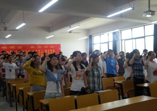 6月14日,管工学院在D栋108举行了庄严的入党宣誓会。徐柳根院长、大三辅导员施磊磊老师、团委书记周爱军老师、大一辅导员邢维迢老师参加了本次大会。