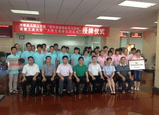 7月11日,共青团马鞍山市委“青年就业创业见习基地”暨安徽工业大学“大学生社会实践基地”授牌仪式在马鞍山地税局举行。共青团马鞍山市委副书记熊贤达,市地税局副局长赵玉峰,市地税局办税服务分局局长黄旭东,校团委书记窦贤琨,管理学院副院长季爱华携28位暑期社会实践队成员参加了授牌仪式。