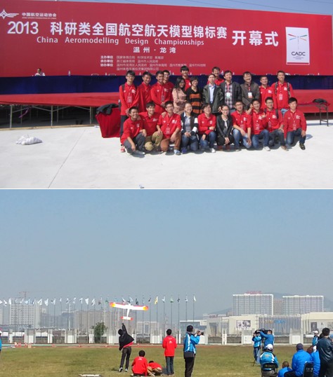 近日,由国家体育总局、科学技术部、教育部共同主办的2013年科研类全国航空航天模型锦标赛在浙江省温州市圆满结束。我校航模队,参加了对地侦查、电动滑翔机和科技创新3个项目的比赛。我校学生在与北航,南航,清华,浙大等知名高校激烈竞争中,不畏强手,首次参赛即获得电动滑翔项目的三等奖两项和对地侦查项目三等奖一项的好成绩。在科技创新创意项目中,“基于语音控制的小型四旋翼无人机的设计及实现”和“便捷式固定翼飞机的结构布局优化设计”这两项创新喜获三等奖。