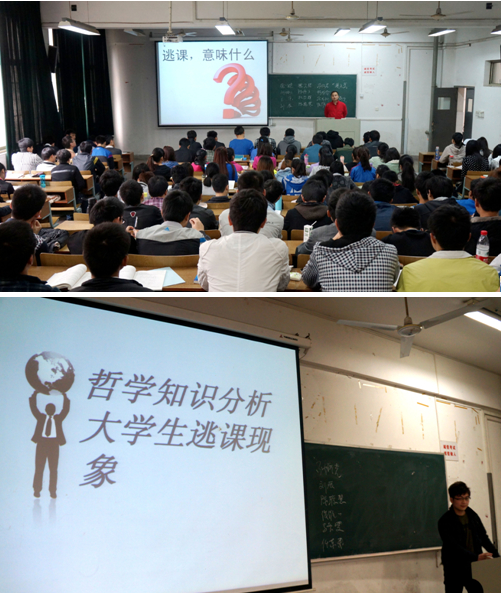 在上学期思想政治理论课教学中,开展了“哪些行为影响听课?”的课堂调查,“旷课迟到”被排在“十大影响听课行为”的第二位,因此,本学期以“逃课,意味着什么?”在学生中展开讨论。“逃课”被定义为“人不在教室”和“人在心不在教室”两种情况。