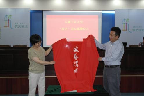 5月30日上午10点,“筑艺讲坛”揭牌仪式在东区图书馆报告厅举行。南京信息工程大学传媒与艺术学院院长许健康教授、安徽工业大学艺术与设计学院王薇书记共同为“筑艺”讲坛揭牌。
