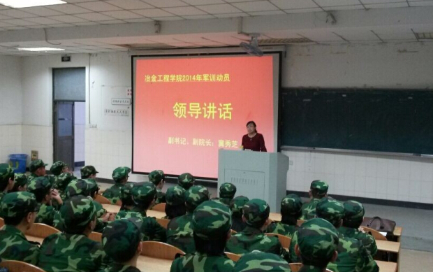 9月13日下午,冶金工程学院2014级新生军训动员暨宣誓会在秀山校区阶教101召开。院党委副书记冀秀芝,全体辅导员老师出席会议,大会由院团委书记、2014级辅导员杨建主持。
