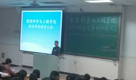 9月13日下午4点,为调动新生军训的积极性,更好的完成军训任务,数理科学与工程学院在阶教202召开2014级新生军训动员大会。院党委副书记林忠心、团委书记张国、新生辅导员张胥卿等出席,全体大一新生参加了会议。会议由张胥卿主持。