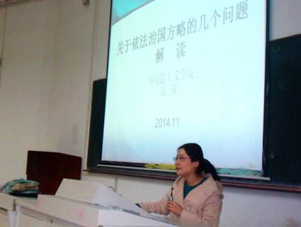 11月8日晚,工商学院思政室在教三203教室举办了“关于依法治国方略的几个问题解读”的学术报告会,报告会邀请安工大马克思主义学院副教授张蓉担任主讲,工商学院思政室教师和近400学生参加了报告会。
