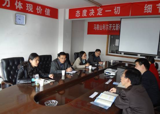 在利尔开元公司,李凤霞一行受到了公司总经理赵锋、副总经理余西平的热情接待。李凤霞介绍了学院的基本情况和2015届毕业生的就业工作情况。无机非金属材料工程系主任柳东明、党支部书记冒爱琴介绍了专业设置、学科建设等情况。双方还就大学生人才培养、毕业生就业基地建设、产学研合作等进行了深入的沟通和探讨。