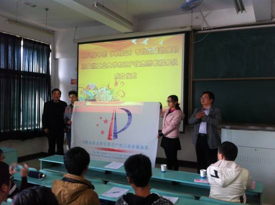11月18日,安徽工业大学知识产权志愿者服务队成立仪式在秀山校区教南203举行。市知识产权局局长秦玉保、工创中心主任冷护基和服务队指导教师代表参加了此次活动。活动由工创中心创新理论教学科陈霞主持。