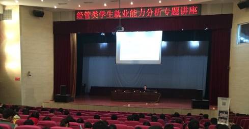 12月1日下午,为加强学生对就业问题的认识,商学院在新大学生活动中心举办经管类学生就业能力分析专题讲座,并邀请上海财金通朱晓希经理担任主讲,商学院大三、大四年级学生到场听取讲座。