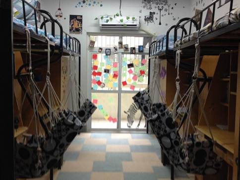 各参赛寝室用不同的主题、风格和个性装饰展示了寝室的风采。整洁的寝室、个性化的废品改造挂饰、细致的搭配展现了学生们极具创意的创造美的风采。其中,女生C#103宿舍用她们纯手工制作的饰品装饰的充满朝气的寝室获得了评委的一致好评。 男生们也毫不逊色,他们的寝室简约却很有层次感,个性张扬却不乖张,同中有异,让人赞叹。
