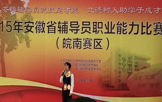 3月20日至22日,2015年安徽省高校辅导员职业能力皖南赛区比赛在安徽商贸职业技术学院举办,经过2天的激烈角逐,工商学院辅导员徐晓莉荣获三等奖。