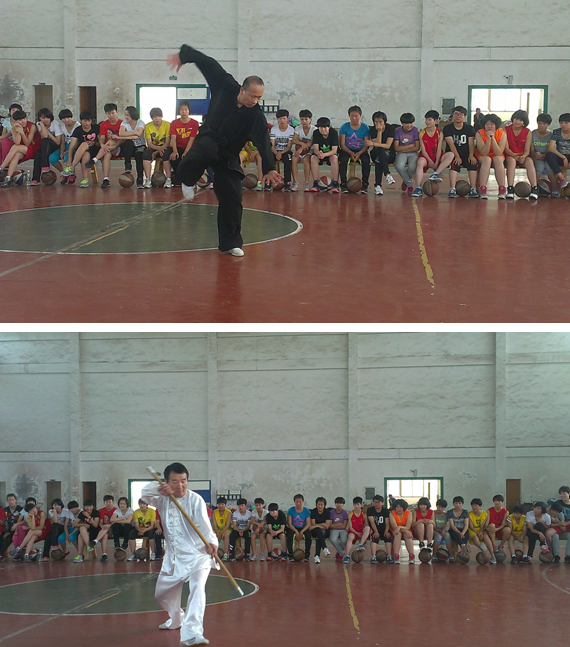 为了弘扬中国传统武术和经典文化,丰富大学生课余文化生活,锻炼强健体魄,培养坚强意志。应体育部特邀,马鞍山市武术动员会会员韩斌先生及其同门师兄弟一行于5月9日下午在秀山校区体育馆进行形意拳、形意杆、太乙五行、太极拳、龙形八卦等表演。演出现场气氛热烈,学生们对精彩的表演报以阵阵掌声与喝彩声。博大精深的武术文化给我校学子带来了艺术的熏陶、文化的启迪,受到师生一致称赞。