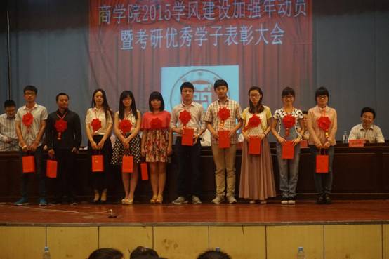 会上,章铁生对本年度考研情况进行总结并宣读表彰决定,希望同学们扬长避短,努力拼搏,在今后的学习中取得更好成绩。季爱华就商学院学风加强年活动方案进行解读和布置。号号召同学们共同建设、共同维护,从现在、从身边、从自己做起,建设具有商学院特色的学风。
