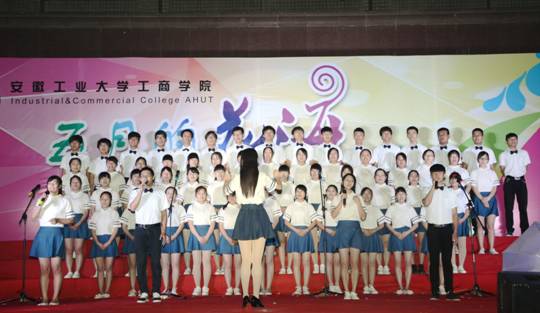 工商学院合唱团演唱了《安徽工业大学校歌》、《鸿雁》(无伴奏合唱),拉开了比赛的序幕。经过一个多月的精心准备,财管、自动化、给排水等20个专业共18支参赛队伍依次登台,整齐划一的服装,独具特色的表演,给观众带来一次又一次的震撼。土木专业演唱的《男儿当自强&众人划桨开大船》,演唱形式别出心裁,彰显了工商学子积极向上的拼搏精神。艺术专业(包括艺术设计、视觉传达设计、产品设计等专业)演唱的歌曲《在灿烂阳光下》,在歌曲编排、演唱音准、舞台效果等方面都非常突出,收获了大家阵阵热烈的掌声。