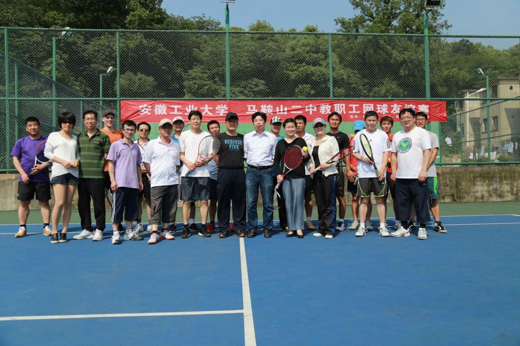 5月14日下午,由校工会主办、教职工网球协会承办的2016年安徽工业大学——马鞍山二中教职工网球友谊赛在佳山校区网球场举行。双方各派出5对双打选手参加竞赛交流,比赛气氛友好热烈,赛场精彩纷呈,经过3个小时的相互球技切磋,安工大以4:1的总成绩取得最后胜利。