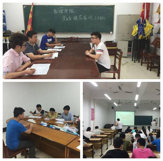 竞选考核由笔试和面试两部分组成。笔试环节主要考察竞选者对学院团委学生会部门工作职责和工作开展情况的了解程度以及对未来工作的设想。面试环节是由面试官从提前公布的18个题目中随机抽取,各竞选者结合自身参与或组织校院活动的体会对有关问题进行回答,阐述自己的见解。