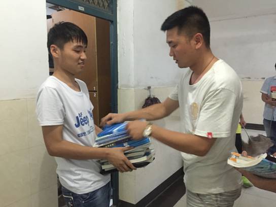 会后,大一学生进入毕业生宿舍,毕业生们将有关专业书籍和物品等送到学弟妹妹手中,希望他们将赠书捐物的传统继承下去。学弟学妹们也表达了对毕业生们的感谢和祝福,表示一定会继承学院的优良传统,珍惜在校的学习时光,不虚度年华,为院争光。