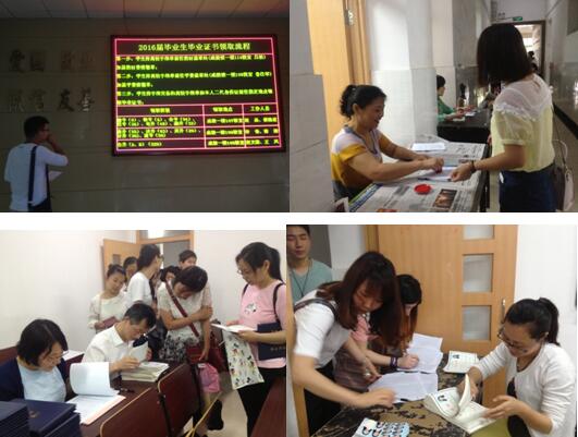 7月3日、4日,继续教育学院组织全体工作人员现场集中办理毕业生离校手续,发放毕业证书和学位证书,学院2016届业余学习一千三百多毕业生领取毕业证书。