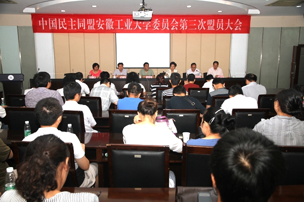 中国民主同盟安徽工业大学委员会于7月9日在校学术会议中心召开第三次盟员大会,马鞍山市政协副主席、民盟马鞍山市委主委田战雷,马鞍山市委统战部常务副部长潘淑琴等有关领导出席会议,校党委统战部负责人和民盟校委会负责人等参加大会。大会由民盟校委会副主委李德俊主持。