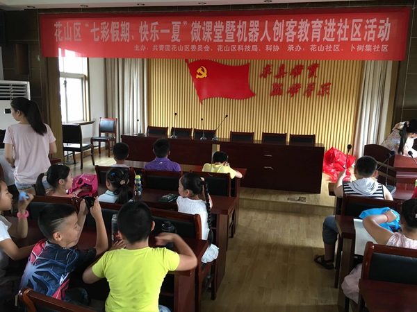 7月14日上午,管工学院社会实践队员分别来到马鞍山文苑社区和卜树集社区,在文苑社区组织社区的孩子们参加“读书沙龙”,引导社区孩子培养读书的兴趣;观看红色电影,缅怀革命先烈;举办了“青少年防溺水知识宣传”、“国防知识讲座”和“除四害”等知识讲座。在卜树集社区,同学们将开展为期15天的“七彩童年,快乐一夏”的社区夏令营活动,分别开展“反邪教主题教育活动”、“安全教育活动”、“我是小小志愿者”——清除街道牛皮癣,清洗公共自行车等活动,并在“多博机器人”全体人员的带领下,举办了机器人进社区活动,小朋友观看了机器人制作影片,并自己动手制作简易的机器人模型。