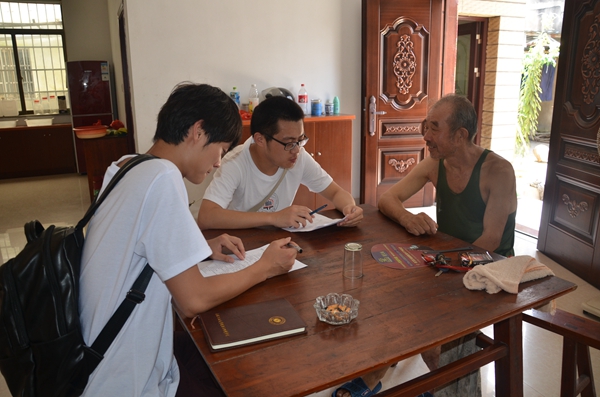 全队人员兵分3路,以镇政府为中心,分别向3个方向邀请村民参与问卷调查。同时随机走访家具厂等当地小微产业。几个小时下来,队员们填报了问卷75份。同学们在与老乡的交谈中也真实体验到了当地的民风民情。