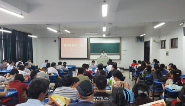 9月5日下午,商学院在秀山校区汇文楼D207教室召开新学期第一次全院教职工大会,会议由学院党委书记黄国才主持。