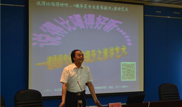 赵平教授报告的题目是《说得比唱得好听·辅导员专业素养提升之演讲艺术》。他从我的青春谁做主?(受众角色分析)、美丽是最有力的推荐信(确立第一印象)、好一个“情”字了得(酝酿丰富情感)、黑白石子的言说(调整思维结构)、原来生活可以更美的(包装演讲内容)、隐形翅膀带我飞(强化人际吸引)、七个男人和一个女人的故事(暖场点睛艺术)、真理也需要再包装(锤炼审美语言)等八个方面讲述了辅导员的演讲艺术,向我们传授了思想政治教育审美化实践方法,对思想政治教育谁来讲、讲给谁、特别是怎么讲,都进行了分析。