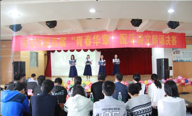 为培养同学们的爱国热情和集体荣誉感,10月23日下午,安徽工业大学商学院第四届“青春华章”配乐诗文朗诵决赛在本部旧大学生活动中心举行。商学院团委书记、团委副书记及学生会各部门正部等担任此次比赛的嘉宾和评委。商学院2016级各班级同学也来到现场为参赛班级呐喊助威。