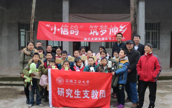 近日,我校第三届研究生支教团在四川省乐至县童家小学和西禅小学开展“小信鸽筑梦帅乡”活动,为这里的孩子们带去了特别的圣诞礼物,来自安徽工业大学志愿者的书信、爱心衣物以及爱心助学金。