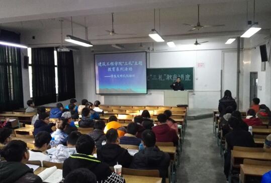 为加强大学生文明礼仪养成教育,提升学生综合素质,共建文明和谐校园,12月28日上午,在佳山校区第二教学楼101教室,院党委副书记、副院长赵龙为2016级土木工程、安全工程两个专业近200名学生举行文明礼仪专题讲座,预示着建筑工程学院为期半年的“三礼”教育正式启动。