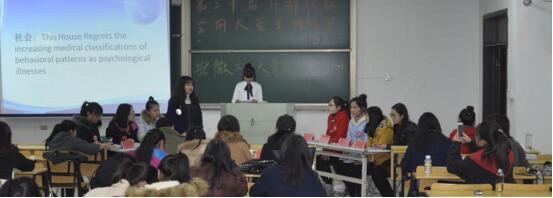 此次比赛意为校辩论赛选拔优秀选手,是安工大首届英文辩论赛的初赛,采用英国议会制辩论模式,每场辩手8人,分为正方上院、下院,反方上院、下院4组。担任此次比赛的评委老师是来自安徽工业大学外国语学院英语系、大外一部、大外二部、研究生部的JOHN、戴拥军、汤红、汤桂琼、张靖、徐丽6位老师。