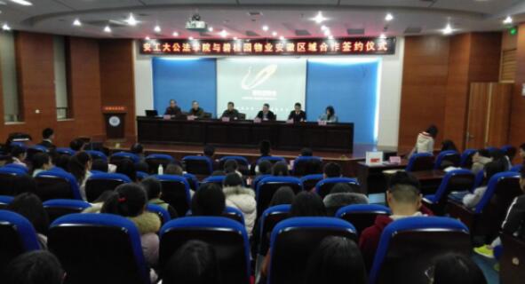 3月15日,公共管理与法学院与广东碧桂园物业服务股份有限公司安徽区域总公司在校秀山校区振华图书馆第一报告厅举行了产学研合作签约暨授牌仪式。本次签约授牌仪式由公共管理与法学院院长张洪根主持,出席本次仪式的有广东碧桂园物业服务股份有限公司安徽区域总经理吴爱峰、区域人力资源经理钟长征等公司代表,校学工部就业指导中心主任丁忠利,公共管理与法学院党委书记曹世华等院领导、各系主任、辅导员和学生代表。