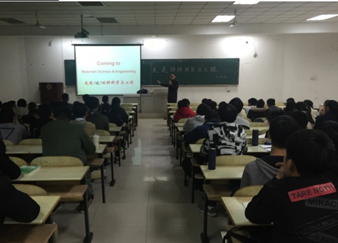 何宜柱为材料学子们讲解了什么是材料科学与工程,讲述了材料学科的来历和发展历史,展示了各种材料的不同用途,展望了材料学科的发展方向;鼓励同学们树立高远目标,成为优秀的人才。同学们踊跃地回答问题,与老师积极互动。