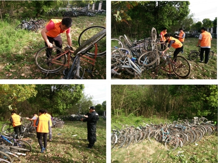 此次清理活动建立在上学期保卫处进行的统一清理和前期自行清理的基础上,重点将停放在建工楼周边及楼道中的车身残破、落满灰尘、轮胎没气等长期无人使用的自行车和电动车清理至学校东大门“废旧自行车停放点”。材料学院学生预备党员和发展对象在东大门停放点把成堆的破旧自行车清理好并分类摆放整齐,他们不怕脏、不怕累,认真清理,严谨认真的工作作风得到保卫处工作人员的肯定。学校保卫处接下来将会进行废弃自行车的认领和进一步清理工作。