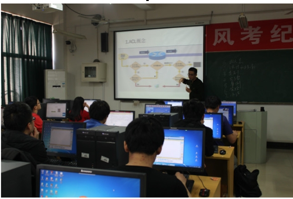 “路由器技术”是面向网络工程专业学生开设的课程,专业性强、涉及面广,教学难度大。“IP访问控制列表(ACL)配置”是这门课程的重点之一,李乔自编课件,围绕重难点,结合大量的实际案例进行讲解分析。实践环节,李乔走下讲台,深入到同学们身边,手把手带大家通过电脑做实验,并逐一检查;学生完成实验后,在教学网络平台上递交实验报告,并完成问答题回答。整个实践教学组织有序,课件图文并茂,达到了较好的教学效果。