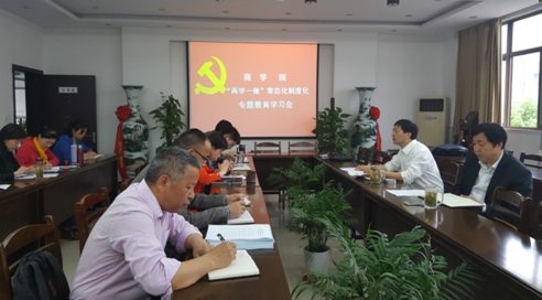 首先,黄国才带领大家集体回顾了习近平总书记视察安徽时的重要讲话精神,并指出一年来我们以习近平总书记视察安徽重要讲话精神为指引,坚持思想上对标对表、行动上紧跟紧随、执行上坚定坚决、落实上较真叫板,实现了学院稳步发展的良好局面。“两学一做”,基础在“学”,关键在“做”,今后我们必须反复学习、反复思考、深入践行,一以贯之地贯彻落实到学院中心主业的全过程、各环节。