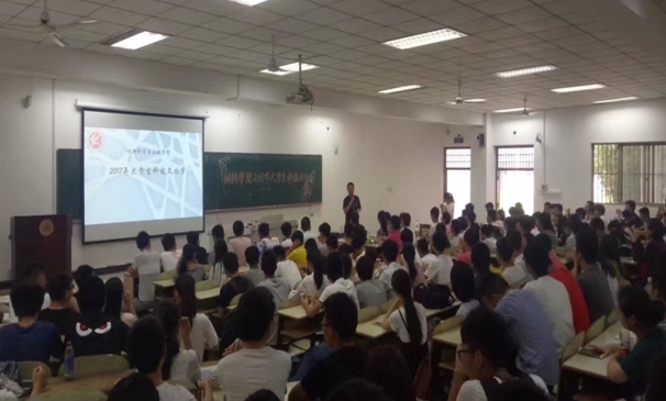 为了培养大学生的学术科技创新能力,营造校园科技文化氛围,5月21日下午,我校材料学院于教三103开展2017年大学生科技文化系列活动。该院团委书记、16级辅导员、院团学生干部担任各项目负责人以及两百多名2016级学生参与活动。