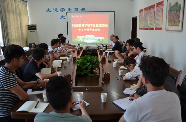 5月27日下午,本学期第三次学生工作接待日在秀山校区举行,本期接待日以“新版《普通高等学校学生管理规定》学习研讨”为主题,就学生管理相关规章制度的修订情况向学生代表征求意见。来自14个学院的学生代表,教务处、学工部(处)、团委、后勤处、现教中心和工创中心等部门负责同志和老师,部分学院负责同志和法学专业老师参加了接待活动。