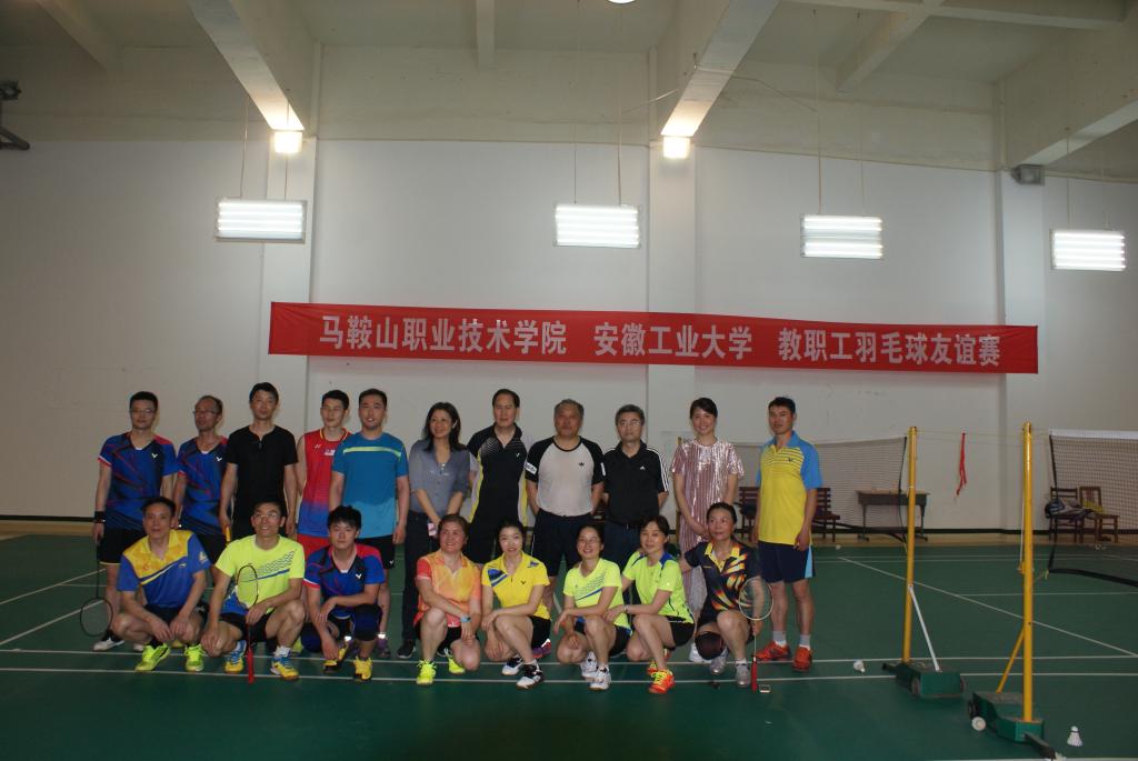为加强两校教职工的交流,增近兄弟院校的感情,5月20日下午,我校工会与马鞍山职业技术学院工会共同组织开展了两校教职工羽毛球友谊赛,比赛在马职校内羽毛球馆进行。我校教职工羽毛球协会组织了十位教职工参加了比赛,工会副主席甘亚、羽协会长李德俊等亲临指导。比赛分男单、混双、男双共5场进行,双方球员展示出了最好的竞技状态,比赛打得难分难解、高潮迭起、精彩不断。我校代表队队员奋力拼杀、顽强拼搏,经过5场激烈对抗,以3:2的比分险胜马职教职工羽毛球队。