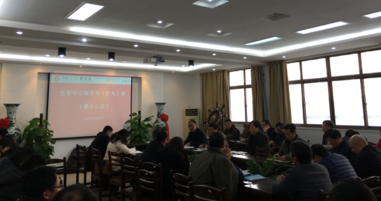 12月25日下午,商学院召开2017年度第十二次党委中心组(扩大)学习会。会议由学院党委书记黄国才主持,院党委委员、党支部书记、各系室主任、副主任及骨干教师参加了学习会。