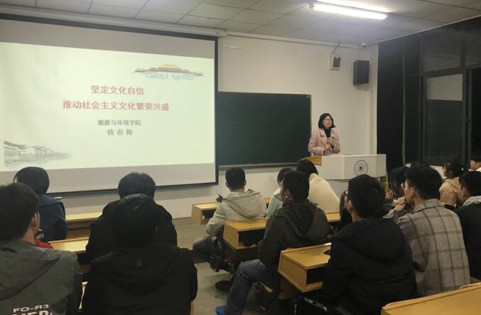 宣讲会上,钱春梅以“坚定文化自信,推动社会主义文化繁荣兴盛”为主题,从“文化自信的含义”,“文化自信的底气”以及“如何坚定文化自信”三个方面展开宣讲,阐释了文化是一个国家、一个民族的灵魂,文化兴国运兴,文化强民族强,没有高度的文化自信,没有文化的繁荣兴盛,就没有中华民族的伟大复兴。张苒以“今天,我们如何爱国”为主题,沿着历史的脉络,从方志敏、钱学森、任正非等人的爱国行动、电影《我和我的祖国》中的七个历史片段,乃至身边的叶连平老人的感人故事等与在场学生展开探讨,阐释了爱国是人世间最深层、最持久的情感,是一个人立德之源、立功之本,它扎根在亿万同胞的血肉里,深藏在中华民族伟大复兴的理想里,爱国不是一句口号,而是一种情怀和担当。