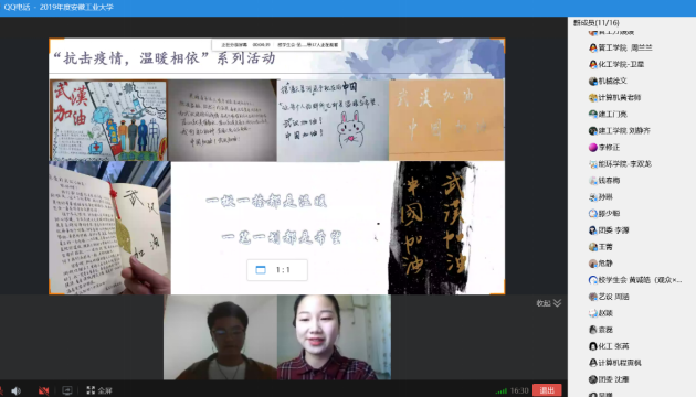 4月13日下午,2019年度安徽工业大学优秀学生会评选采用“云答辩”的方式在线上进行。校团委全体老师、各学院分团委书记以及各学院学生会主席参加此次“云答辩”会。