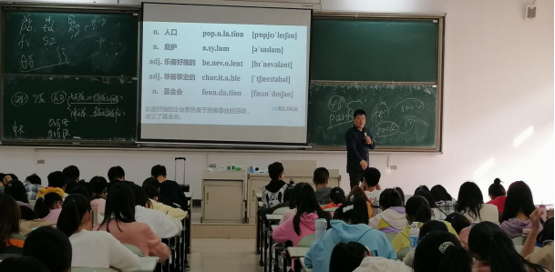 讲座开始,施剑刚就英语学习提出了''英语生态''的概念。他教同学们以单词为基础和出发点,明确目标,落实到听、说、读、写四个方面的训练,找到适合自己的英语学习有效方法。此外,施剑刚还带领同学们进行单个音节的发声练习,并阐释了音形记忆和词义记忆的概念,帮助同学们巩固发音基础。