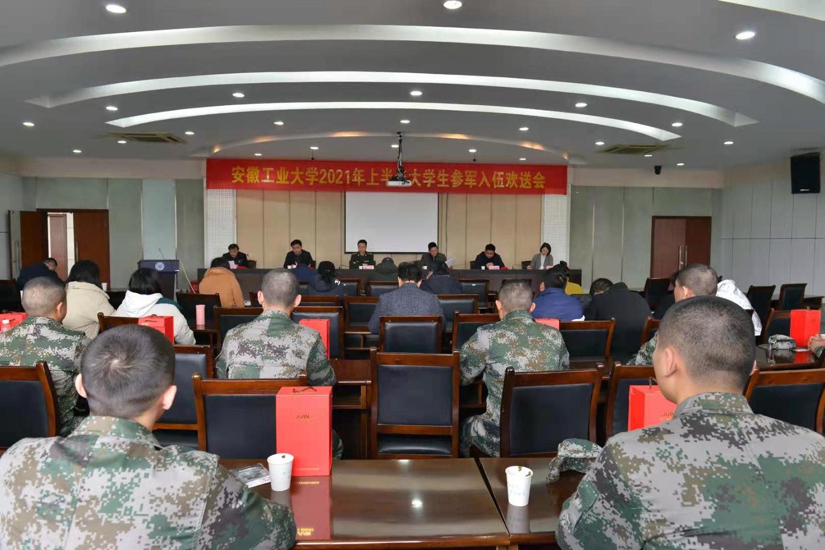 3月8日上午,我校2021年上半年大学生参军入伍欢送会在佳山校区举行。马鞍山市花山区人武部部长余迪,校武装部、学生工作部、团委、教务处及各学院学生工作负责人、辅导员代表和全体新兵参加欢送会。