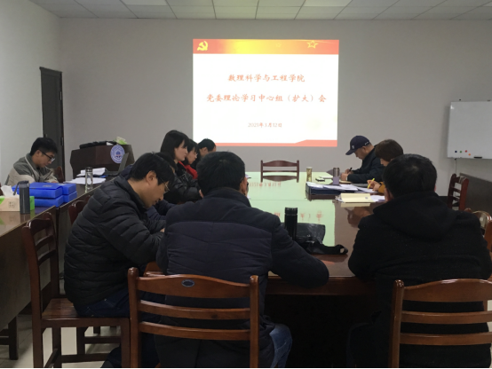 3月12日下午,数理学院党委在数理楼306室召开中心组学习(扩大)会议,院党委委员、院领导、各支部书记参加了会议。院党委书记张清主持会议。