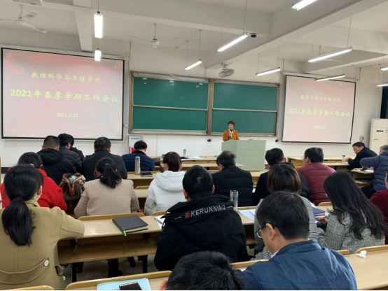 3月22日下午,数理科学与工程学院在数理楼403召开了学院2021年春季学期工作会议,选举出席校第五届教职工代表大会暨工会会员代表大会代表,学院全体教职工参加了会议,会议由院党委书记张清主持。