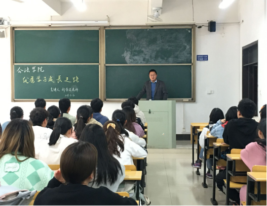 3月20日中午,公法学院在汇文楼D101召开“优秀学子成才之路”主题团课,学院优秀团干、学生骨干、成绩优异学生等优秀学子代表参加,院团委书记邢维迢主讲。